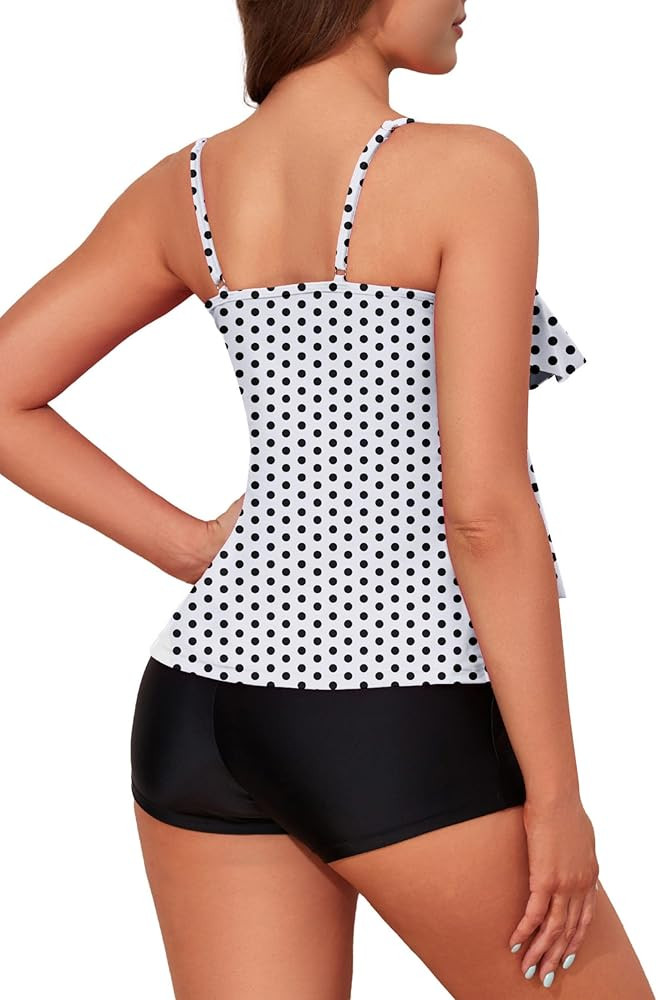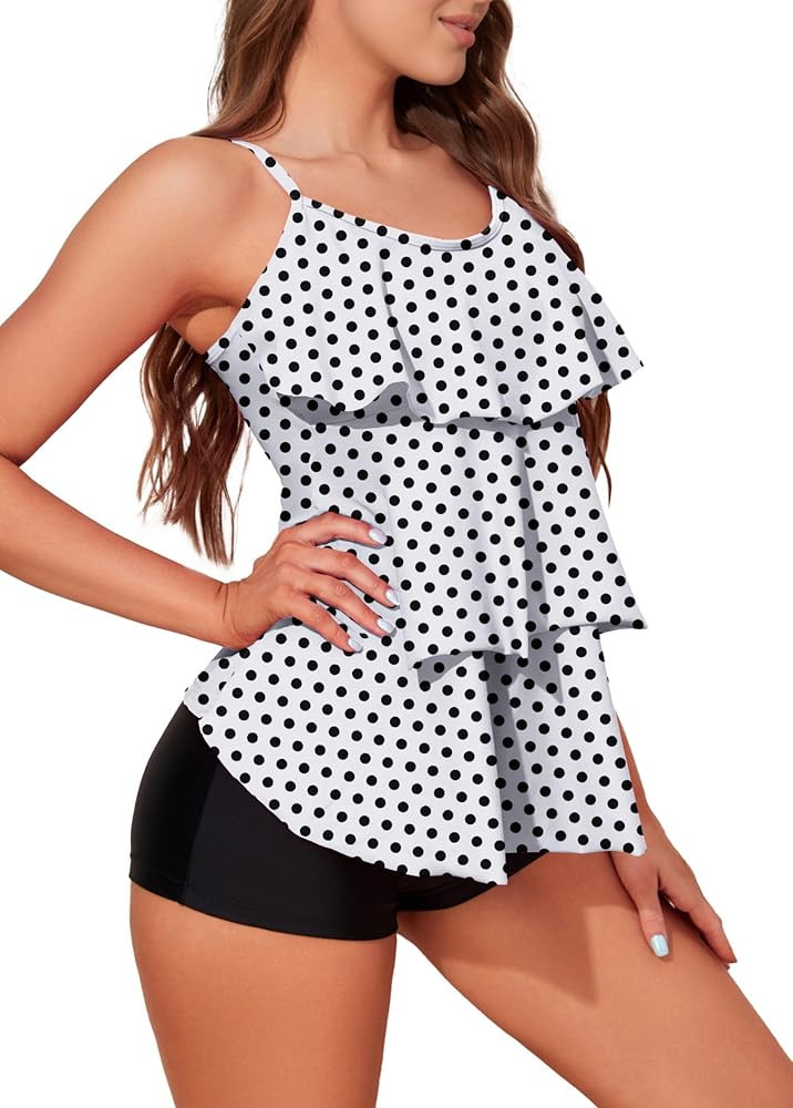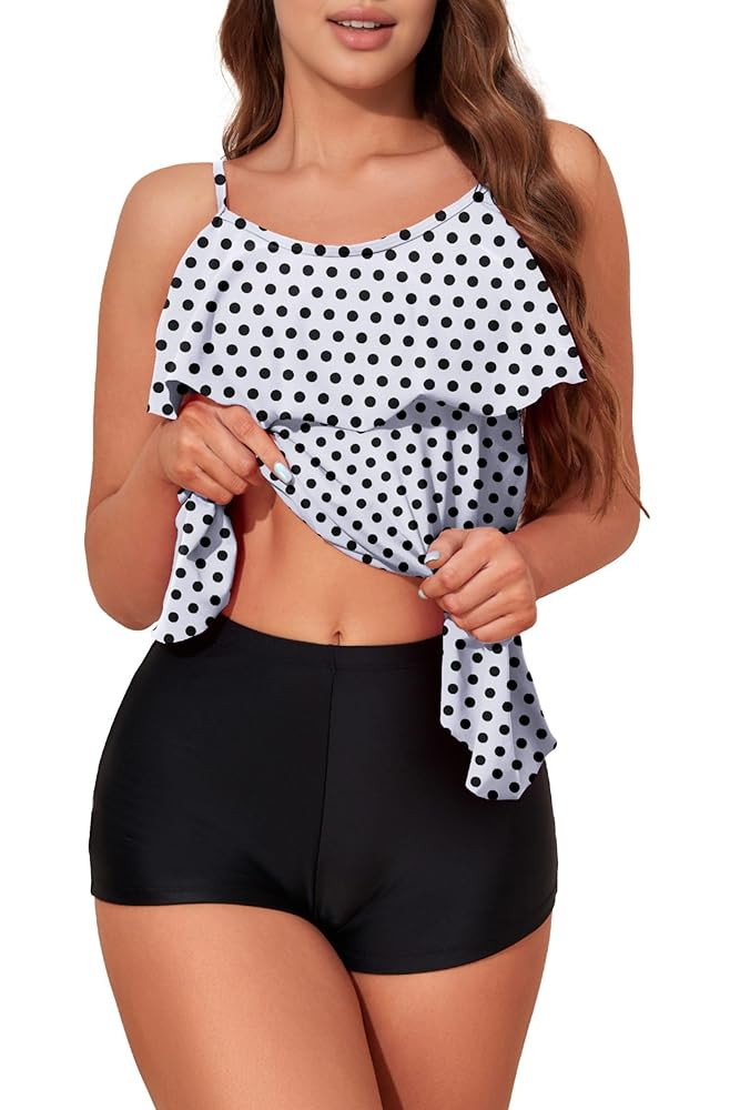 ✔ CLASSIC COVERAGE --- Flounce tankini top matches with boy-shorts bottoms, ❤vintage fashion Sport style for women. Our swimsuits are elegant for girls and women, making you look amazing in beach, swimming pool, Hawaii, Honeymoon, etc.