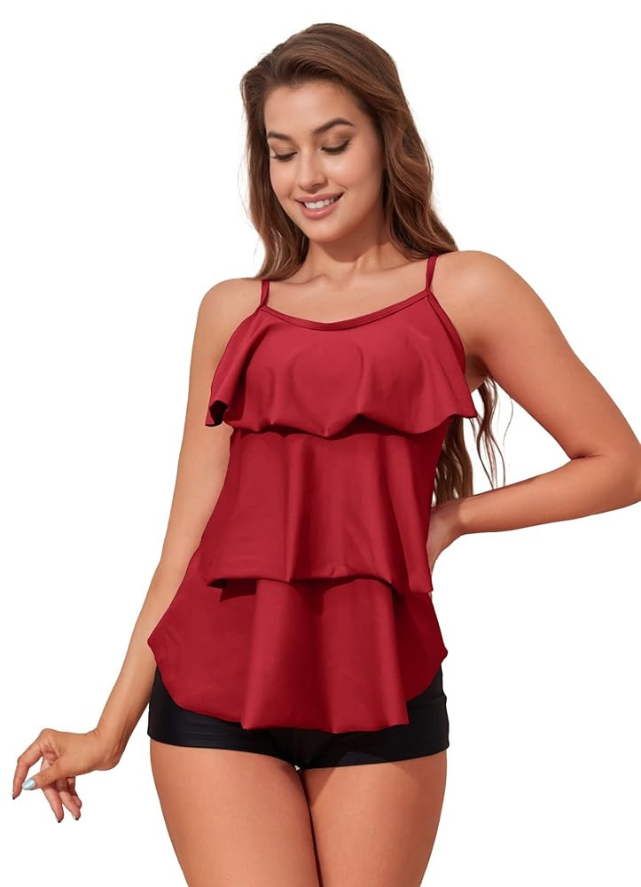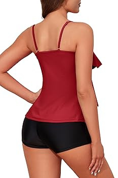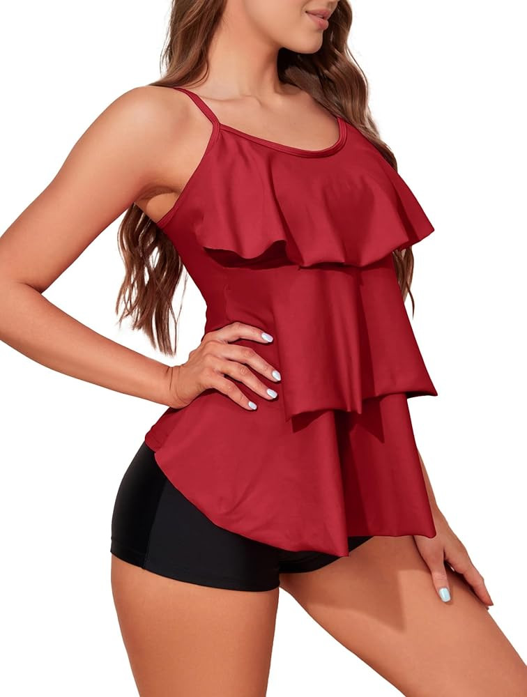 ✔ CLASSIC COVERAGE --- Flounce tankini top matches with boy-shorts bottoms, vintage fashion Sport style for women. Our swimsuits are elegant for girls and women, making you look amazing in beach, swimming pool, Hawaii, Honeymoon, etc.