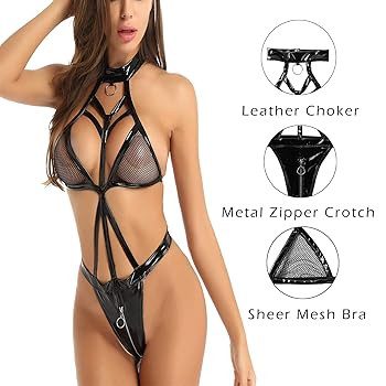 Material:Wet look sexy leather lingerie for women,makes you more stunning.Sheer mesh no pad bra,breathable and show you charm without hesitation. Please read the size chart carefully to choose the right size for you. If you don't like the overly tight experience, we recommend choosing one size larger than usual