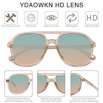 • HIGH-QUALITY MATERIALS - These YDAOWKN square aviator sunglasses are made of high quality frame material UV400 lens and solid anklet to ensure you a long time use Unisex can be worn with different styles and outfits.